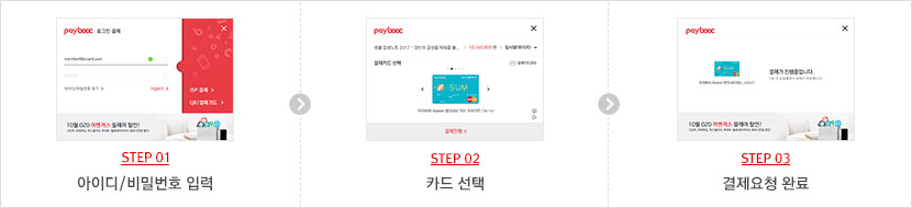 PC & 모바일 어디서나 등록된 ID로 로그인 후, 결제할 카드를 선택하여 결제 가능합니다.