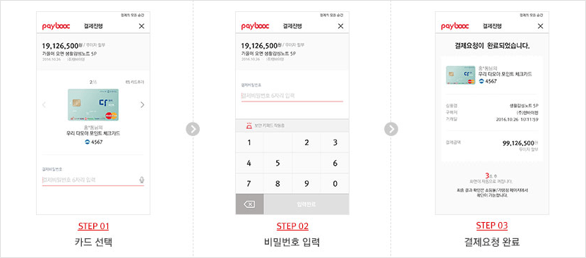 - BC paybooc 은 기존에 보유하고 있는 카드를 등록할 회원 ID를 생성하고, 통합 결제비밀번호를 설정하여, 사용이 가능합니다.