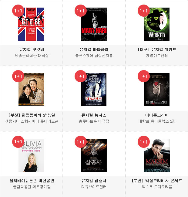 공연 티켓 1+1 (짝수 결제 시 한함)
