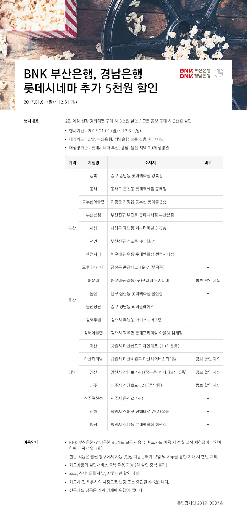 BNK 부산은행, 경남은행 롯데시네마 추가 5천원 할인