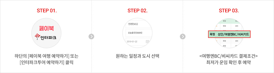 - STEP 01. 하단의 [페이북 여행 예약하기] 또는 [인터파크투어 예약하기] 클릭