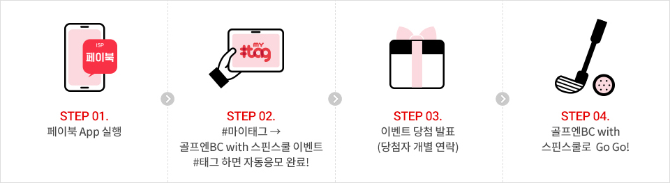 - STEP 02. #마이태그 -> 골프엔BC with 스핀스쿨 이벤트 #태그 하면 자동응모 완료!
