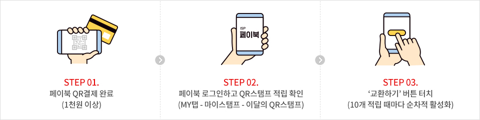 - STEP 01. 페이북 QR결제 완료 (1천원 이상)