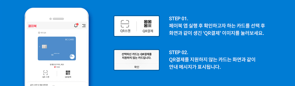 - STEP 02. QR결제를 지원하지 않는 카드는 화면과 같이 안내 메시지가 표시됩니다.