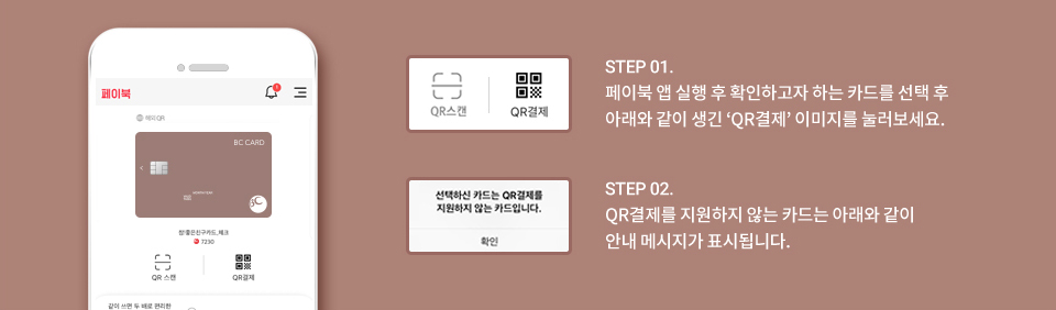 - STEP 02. QR결제를 지원하지 않는 카드는 아래와 같이 안내 메시지가 표시됩니다.