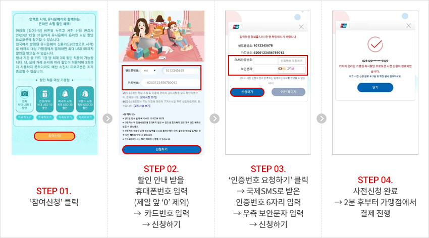 - STEP 04. 사전신청 완료 → 2분 후부터 가맹점에서 결제 진행