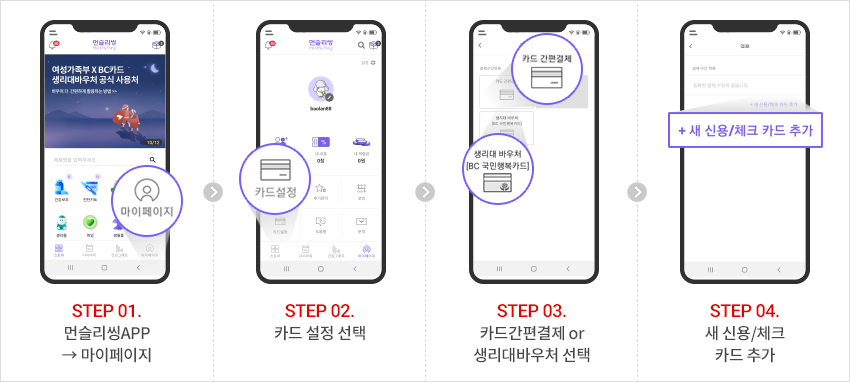- STEP 03. 카드간편결제 or 생리대바우처 선택