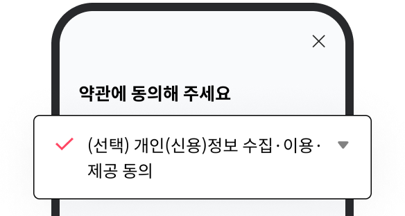 약관 동의 시 ‘(선택) 개인(신용)정보 수집 이용 제공 동의’ 내 모든 항목에 동의하기