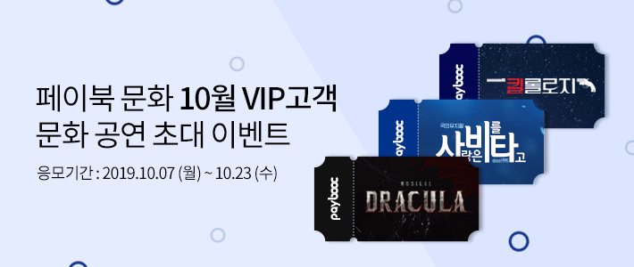 - 수집 및 이용 목적 : <[페이북 문화] 10월 VIP고객 문화 공연 초청 이벤트> 응모 및 당첨자 선정