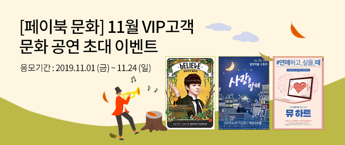 - 수집 및 이용 목적 : <[페이북 문화] 11월 VIP고객 문화 공연 초청 이벤트> 응모 및 당첨자 선정