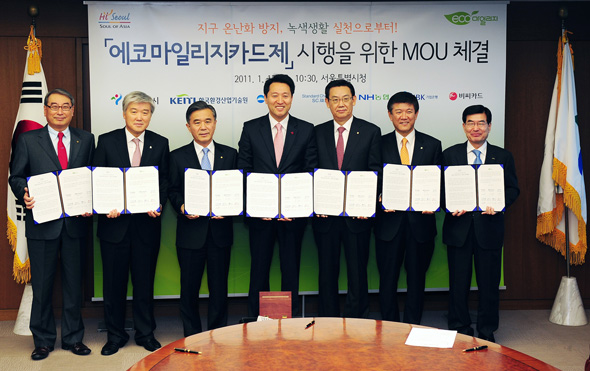 각 기관 대표들은 협약식에서 서울시가 추진중인 에코마일리지 제도에 서울시민의 참여를 활성화하기 위해 공동으로 노력할 것을 합의하였고, 협약식은 MOU체결 서명 및 에코마일리지 1호 카드를 서울시장에게 전달하는 행사순으로 진행되었다.