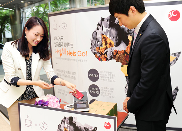 BC카드 사옥 로비에서 아프리카 어린이 돕기 자선 전시회 열어 BC카드(대표이사 사장 이종호, www.bccard.com)는 아프리카 어린이들을 돕기 위한 자선 전시회와 “사랑,해 Nets Go!” 캠페인을 진행한다고 24일 밝혔다. 5월 23일부터 6월 3일까지, 12일간 서초동 BC카드 본사사옥 로비에서 진행되는 이번 자선 전시회 ‘아프리카를 본다, 아프리카 희망을 그리다’는 김종우 작가(회화)의 그림 및 안영상 작가(사진)의 사진작품 40여 점을 전시 중에 있다. 이번 자선전시회는 기존에 아프리카 어린이들을 후원하는 단순한 구호품의 전달이나 금전적 기부방식을 넘어서, 아프리카의 문화와 생활을 다룬 한국인 작가의 작품을 전시하고 수익을 나누는 뜻깊은 행사이다. 자선전시회 기간 내 판매되는 작품의 판매가 중 30%는 아프리카 아동 사망원인 1위인 말라리아 퇴치를 위해 특수 살충 처리된 모기장을 만드는 기금을 조성하는 유엔재단의 “Nets Go!” 캠페인에 기부되어 아프리카 어린이들을 돕기 위해 사용될 예정이다. BC카드의 임직원도 자선전시회 기간 중 본사사옥에 설치한 카드결제 단말기를 통해 신용카드를 이용하여 원하는 금액만큼 카드를 결제하여 기부할 수 있도록 하는 “사랑,해 Nets Go!” 캠페인에 동참하고 있다. 특히, BC카드는 임직원이 카드결제로 기부한 금액과 동일한 금액을 매칭그랜트(Matching Grant : 임직원이 내는 기부금만큼 기업에서도 후원금을 내는 제도)방식으로 후원하여, 자선전시회 작품의 판매가 중 30%와 함께 유엔재단의 “Nets Go!” 캠페인에 전달할 예정이다. 한편, BC카드가 마련한 이번 자선전시회는 고객에 대한 문화예술 서비스 제공과 미술시장의 저변확대를 이루기 위해 제공되는 BC아트리스 서비스와 연계되어 진행되었다. BC카드 관계자는 “향후 이러한 일상공간에서의 전시회를 지속적으로 개최하여 고객들에게 다양한 서비스를 제공하는 것은 물론 실력 있는 미술작가들의 후원과 기부활동을 접목한 전시회를 개최할 계획”이라고 밝혔다. |