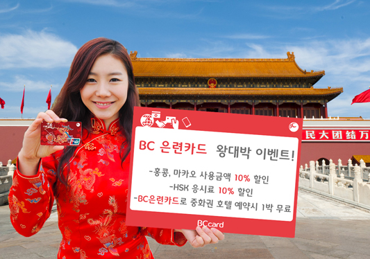 BC카드(대표이사 사장 이종호, www.bccard.com)는 BC은련카드 고객들이 국내 및 중화권에서 다양한 혜택을 받을 수 있는 "왕대박 이벤트"를 시행한다고 20일 밝혔다. 이번에 BC카드가 진행하는 "왕대박 이벤트"는 12월 31까지 진행되며 BC은련신용카드는 물론 BC은련체크카드 소지 고객들이 홍콩, 마카오에서 카드사용 시 10% 캐시백, HSK(중국한어수평고시) 응시료 최대 10% 캐시백, BC투어 중화권 여행상품 5만원 할인 등과 같은 다양한 혜택을 제공한다. ▲홍콩, 마카오 결제금액, HSK 응시료 10% 캐시백! 이벤트 기간 내, BC은련카드로 홍콩 및 마카오의 은련가맹점에서 결제한 고객들은 결제금액의 10%를 캐시백 받을 수 있다.(카드당 월 3만원 한도, 전월 사용금액 20만원 이상) 또한 HSK(중국한어수평고시) 응시료도 결제금액의 10%까지 캐시백 혜택을 받을 수 있다.(카드당 월 1만원 한도, 전월 사용금액 20만원 이상) ▲중화권 여행상품 5만원 할인, 호텔 1박 무료 BC은련카드로 BC카드의 여행서비스인 BC투어(tour.bccard.com)에서 중화권(중국, 홍콩, 마카오, 대만, 싱가폴 등 5개국) 여행상품 구매시에도 5만원 할인혜택을 받을 수 있다. 이벤트 기간 내 BC투어에서는 BC은련카드 결제고객을 대상으로 △ 중화권 여행상품 5만원 할인 △ 중화권 호텔 1박 무료(단, 3박 이상 시. 전월 사용금액 20만원 이상) △ 중화권 골프상품 1인 무료 및 공항 주차료 지원 서비스(단, 4인 1팀 구성. 무료주차 지원금액은 최대 3만원) 등과 같은 다양한 혜택을 제공한다. |