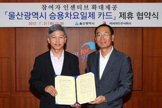 | 제목 | BC카드, 울산광역시와 승용차요일제카드 발급 협약식 진행 | 등록일 | 2012.07.31 |