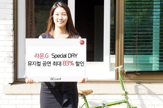 라운.G Special DAY, 뮤지컬 공연 최대 83% 할인 - "라운.G Special DAY"란 BC카드 고객들을 위해 연간으로 진행되고 있는 문화공연 할인서비스 - "보니앤클라이드", “위키드", "고스트" 등 유명 뮤지컬 공연티켓 최대 83% 할인혜택 제공