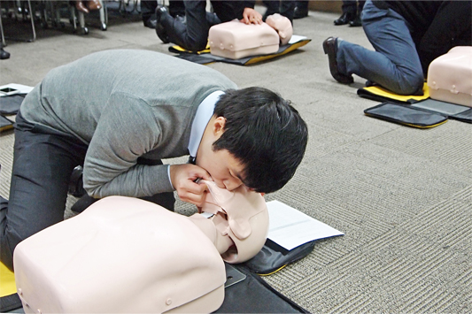 꺼져가는 생명을 살리는 카드회사 직원을 본적 있나요? BC카드 임직원 100명 심폐소생술 민간 자격증 획득 - 대한응급구조사협회에서 주관하는 심폐소생술 민간 자격증에 도전한 BC카드 임직원 전원 합격 - 여성 21명, 남성 79명 등 카드회사 직원이 단체로 생명과 관련된 자격증에 도전하는 건 드문 일 - 사회복지기관에 심폐소생술 시범 등 사회공헌활동을 추진할 'Heart Angels 100' 인명 구조단 발족 BC카드 온라인채널팀 고세영(39 여) 과장. 회사에서 단체로 추진한 '꺼져가는 생명 살리기' 심폐소생술(CPR) 민간 자격증을 획득했다. "두 아이의 엄마이자 시부모님을 모시고 살면서 꼭 필요하다고 느꼈기에 도전하게 됐어요. 이번에 숙지하게 된 심폐소생술을 사용할 일이 없으면 좋겠지만 응급 상황이 생기면 모르는 분일 지라도 즉시 도울 생각입니다". 고과장만이 아니다. 2,700만 고객과 함께 하는 BC카드(대표이사 사장 이강태, www.bccard.com) 임직원 100명은 사단법인 대한응급구조사협회에서 부여하는 심폐소생술 민간 자격증을 손에 쥐게 됐다. 대한응급구조사협회 주관 심폐소생술 민간 자격증을 여성 21명 포함 금융 서비스 직원들이 단체로 받게 된 건 처음이다. ▲ 생활 속 응급처치 요령 및 심폐소생술 실습 교육에서 시작하여 자격증 도전으로 이어져 카드 회사와 심폐소생술. 처음에는 공통점이 없는 듯 보이지만 조금 들여다 보면 의미가 작지 않다. 회사의 직원이자 가족의 일원으로서 동료와 이웃 등 소중한 생명을 지키는 일은 인간의 기본이기 때문이다. 이러한 이유로 지난 10월, BC카드 이강태 사장이 직접 의견을 제안하여 전사적으로 두 차례에 걸친 관련 교육을 실시하였다. 응급환자 발생 시 생활 속 응급처치 요령과 심폐소생술 실습 교육을 받은 BC카드 임직원들의 반응은 폭발적이었다. 대한응급구조사협회 이재영 강사를 초청하여 실제상황과 유사하게 연출된 교육현장. 직접적으로 실습을 체험한 직원들은 가족과 회사의 일원으로서 자신과 주변의 생명과 직결되는 심폐소생술 중요성을 몸으로 체감하였다. 이후 회사 차원에서 단체로 심폐소생술 민간 자격증 도전에 나서게 된 것이다. ▲ 인증 테스트에 도전한 BC카드 임직원 100명 전원 심폐소생술 민간 자격증 획득 응급환자평가 및 응급의료에 관한 법률, 기본 인명 구조술 이론, 성인/영유아 심폐소생술 실기, 자동제세동기(AED) 사용법 및 기도폐쇄 시 이물제거법 이론 및 실기 등 명칭 조차 생소한 8시간의 관련 교육과 실습 과정들. 이 모두를 이수하고 개인별로 실시된 인증 테스트에 도전한 BC카드 임직원 100명은 12월 10일 전원 자격증 획득의 결실을 맺었다. 이들의 자격은 3년 동안 유효하다. ▲ 인권 보호의 본분을 실천하며 사회적 책임을 다하는 기업으로서 활동 확대 예정 BC카드는 이번에 심폐소생술 자격증을 획득한 100명을 "Heart Angels 100"이라는 인명 구조단으로 임명하는 발대식을 가졌다. 앞으로 이들은 강남역과 같은 공공장소, 노인복지회관 등에서 심폐소생술 시범 행사를 포함한 사회공헌활동을 펼칠 예정이다. BC카드 이강태 사장은 "기업이 사회적 책임을 실천하는 데 한계란 있을 순 없다"면서 "그동안 BC카드가 카드 산업의 발전을 위해 노력해온 것처럼 이번 심폐소생술 자격증 취득과 같이 인간의 기본적 권리를 보호하기 위한 노력 역시 지속할 예정이다"라고 밝혔다. ▶ 참고자료. 사진 (사진 1~2) 사단법인 대한응급구조사협회에서 주관하는 심폐소생술(CPR) 자격증 인증 테스트에 도전하는 BC카드 임직원들이 생활 속 응급처치 요령 중 심폐소생술을 실습하는 장면 ![]() ![]() (사진 3~4) 사단법인 대한응급구조사협회에서 주관하는 심폐소생술(CPR) 자격증 인증 시험에 도전하는 BC카드 임직원들이 생활 속 응급처치 요령 중 인공호흡을 실습하는 장면 ![]()