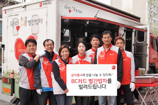 BC카드(대표이사 사장 서준희, www.bccard.com)가 공익행사를 위해 밥이 필요한 기 ※ 빨간밥차 : 한번에 600인분의 밥과 반찬을 조리하고 데울 수 있는 5톤 트럭 / **이동푸드마켓 : 생필품을 나눔 활동을 돕는 인프라를 나누게 됨으로써 보다 더 큰 공유 가치를 창출하고자 하는 목적으로 추진된 이 사업으로 인해 전국 곳곳의 사람들이 빨간밥차의 갓 지은 따뜻한 밥을 만날 수 있게 됐다. 나눔 활동은 물론 비영리적 성격의 공익행사에 빨간밥차가 필요한 기관 및 단체들은 행사 3주 전까지 BC카드로 신청서를 작성 제출하면 심사를 통해 이용할 수 있게 된다. 기업들 역시 동일한 조건으로 신청 및 이용 가능하다는 점도 눈에 띤다. 또한 수도권에서는 이동푸드마켓 트럭도 대여할 수 있다. BC카드는 이번 소셜 쉐어링 사업을 통해 빨간밥차 대여만 제공하는 게 아니다. 빨간 밥차를 이용하게 되는 대상들의 공익활동을 지원하기 위해 행사 성격에 따라 맞춤형 식사(간편식/일반식/보양식)과 운전 기사 및 유류비도 제공할 계획이다. BC카드 경영지원부문장 전경혜 전무는 "지난 10년간 연평균 45만명에 달하는 결식 계층에게 밥을 제공해 온 빨간밥차를 활용해 더 많은 사랑을 나누기 위해 시작한 이번 소셜 쉐어링 사업에 많은 단체와 기업들이 참여하길 희망한다”라고 밝혔다. BC카드 영업마케팅부문장 여재성 상무는 "BC카드는 지난 10여 년간 유니온페이 카드 매입업무를 대행해온 노하우와 기술력을 바탕으로 앞으로도 모바일/인터넷 결제 서비스를 더욱 활성화하여 중국인들의 국내 쇼핑을 확대시켜나갈 계획이다" 라고 밝혔다. <보도자료 사진> BC카드가 10년간 전국에 14대 기증해온 이동식 급식 차량, 빨간밥차를 대여하는 소셜쉐어링에 사업에 착수하여 기관/단체/기업 등의 나눔 활동 및 공익 행사를 지원
