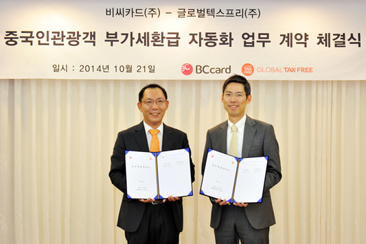 | 제목 | BC카드, 글로벌텍스프리社와 부가세 환급 업무계약 체결 | 등록일 | 2014.10.21 |