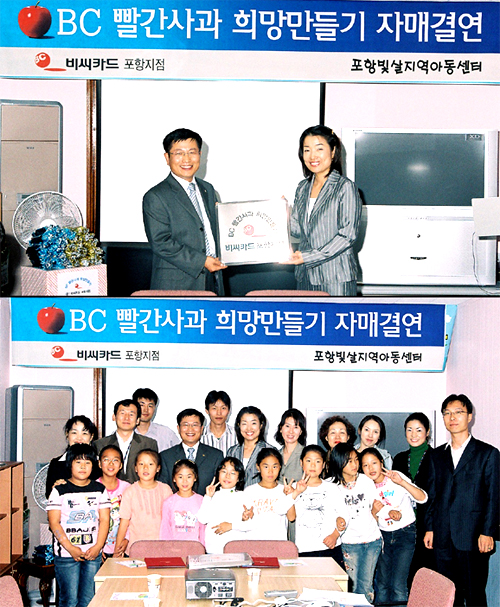 포항시 남구 송도동에 위치한 포항빛살지역아동센터는 한부모 가정, 결손가정이 많은 송도지역 어린이, 초등학생, 중학생 55명이 이용하고 있다. 어린이들의 정서함양을 위해 자매결연식에 앞서 고급사양의 삼성컴퓨터 1대(120만원상당)를 지원하였으며, 전사적 사회공헌활동 "빨간사과 희망만들기" 캠페인의 일환인 빨간사과 어린이문고 대상단체로 접수를 한 곳이기도 하다. 또한, 다음 달부터는 매월 둘째 주 토요일 지점소속 직원 전원이 모금을 통해, 어린이들을 위한 "생일잔치의 날"을 마련하여 어린이들에게 생일축하 및 선물증정, 운동, 독서지도 등 지속적인 결연관계 유지를 통해 지역 사회공헌에도 적극적으로 이바지하기로 했다.
