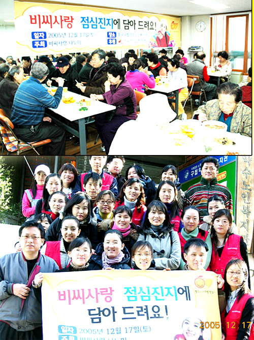 12월17일 고객상담팀 자원봉사단체 비씨사랑 나누미는 약수노인복지관에서 독거노인 180여 명을 대상으로 무료급식 행사를 실시했다.