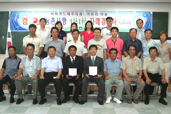 가파리 김동옥 이장을 비롯한 마을 어른 30여명과 대정농협 조합장을 비롯한 농협 관계자, 그리고 비씨카드 제주지점 14명 전 직원들은 이 날 서로의 마음을 열고 한 가족이 될 것임을 굳게 약속했다. 제주지점 직원들은 비씨카드를 대표해서 앞으로 진실한 자세로 가파리와의 우정을 쌓아 갈 것임을 다짐했다.