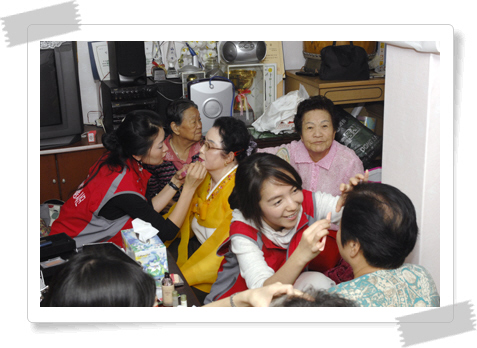 10월 24일 좋으신 분들과 뜻을 모아 장수사진 봉사활동을 하였어요. 비씨카드 사진반을 중심으로 매번 하는 봉사임에도 늘 새로운 분들을 뵙고 어른들을 모시면서 진행해야 한다는 생각에 가볍지 않은 마음으로 한남동으로 향하였죠. 그곳에서 간단히 점심식사를 하고 용산노인종합복지관과 연계된 경로당으로 향하여 봉사활동을 시작하기로 하였습니다. 경로당은 최고의 시설을 자랑하던 복지관과는 달리 매우 열악한 시설에 있어서 저희 모두는 놀랄 수 밖에 없었어요. 힘든 촬영이 되겠구나 생각을 하며 촬영준비를 하는데 할머니들이 빨리 촬영해달라며 재촉을 하시네요.어르신을 모시며 봉사하는 중 가장 힘든 순간이에요. 시간보다 일찍 오신 어르신들이 짜증을 내시면 촬영하는 저희도 고민입니다. 장비를 준비하는 저의 손목을 할머니가 낚아 채십니다. ‘ 또 먼저 하시려고 부탁하시는구나.’ 하고 뒤를 돌아봅니다. “ 욕본다, 이거 마시고 해 ” 하시며 요구르트를 쥐어 주셨습니다. 부끄럽네요. 얼른 한숨에 요구르트를 들이킵니다. 촬영은 너무 장소가 협소하고 통풍이 안되어서 너무 힘들었습니다. 그래도 1시간 반 동안 할머니들과 재미난 얘기도 하며 웃으면서 끝낼 수 있었습니다. 단체촬영을 할 때 자리가 없어서 바닥에 쪼그리고 있을 때 할머니께서 본인 무릎에 앉으라고 하십니다. 제 무릎이..더 튼튼해요.(감사합니다.) 저희는 다시 차를 타고 다른 분들이 기다리시는 한남1동 복지관으로 향합니다. 꿀맛 같은 휴식 시간이네요.. 처음 간 곳은 할머니 분들이 주였지만 이곳은 할아버님들이 많으십니다. 요즘 할아버님들도 멋쟁이시라 화장을 곱게 해드립니다. 한남1경로당은 자리도 넓고 어르신 분들도 적으셔서 수월하게 진행할 수 있었습니다. 봉사가 끝나고 경로당 회장님께서 음료수를 차 안으로 들이미시네요. 안내하시는 분 말씀이 “절대 뇌물 안주시는 분이신데, 무척 맘에 드셨나보네요” 아!!뿌듯해라 이 맛에 봉사하나 봐요~ 무섭다고 혹은 꺼림칙해서 장수사진 봉사활동에 참여를 힘들어 하시는 분들을 많이 보았습니다. 영정사진은 돌아가신 분들의 사진을 영정사진이라고 부르고, 살아계신 분들의 사진은 근영 사진이라고 부르는데 근영 사진을 찍어놓으면 장수한다는 속설 때문에 ‘장수사진’이라 합니다. 그렇기 때문에 사진촬영 하는 현장은 밝은 분위기에 즐겁게 진행됩니다. 어려운게 아닙니다. 말벗이 되어 드리고, 어깨를 주물러드리고, 카메라 앞에서의 굳은 어르신의 표정을 풀어드리기 위해 재롱을 피우는 것.. 가끔씩 어르신들의 눈을 마주칠 수 있는 기회를 많은 분들이 경험하였으면 좋겠습니다.