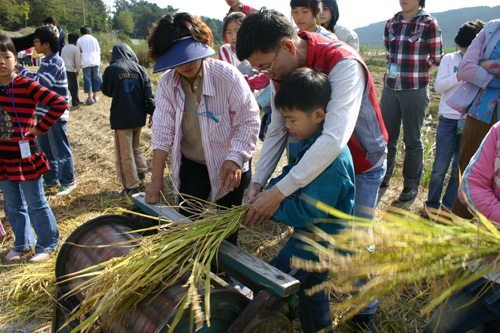 배꽃마을은 마을전체가 체험장으로 청소년들과 울산의 특산물인 서생배도 따고 밭에서 탐스러운 고구마를 캐서 구워먹는 맛과 재미에 떡메 쳐서 인절미 만들기, 벼를 베서 탈곡기 체험도 하고, 청정 개천에서 다슬기와 미꾸라지 잡기, 경운기 타기 등의 체험으로 같은 울산에 있지만 농촌체험과는 거리가 먼 아이들에게 즐거운 자연학습의 시간이 되었습니다. 또한 주변에 우리나라에서 가장 먼저 해가 뜨는 울산 '간절곶'의 탁 트인 바닷가에서 사진을 찍고 농촌체험학습시간을 가지는 등 아름다운 추억을 만들었습니다 체험이 끝나는 시간.. 아이들과 헤어짐을 아쉬워하며 다시 만날 것을 기약하였습니다. < 울산지점 > |