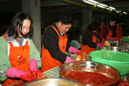 김장 담그기에 참여하고서... 비씨카드 기업 봉사활동을 선택할 때 유난히 눈에 띄었던 봉사활동이 장애 청소년과 함께 김장 담그기 였다. 봉사활동이 나름대로 힘도 들고 어렵겠지만 김장을 난생 처음 직접 담근다는 호기심과 장애우 청소년들과 공감대를 형성하는 봉사활동이 나에겐 매력적이었다. 특히 김장을 담근 후 보쌈 먹을 수도 있을 것 같은 기대감도 함께 ^^11월 21일 오후 2시에 “말죽거리”라 불리는 양재역에 내려 사회 종합 복지관에 도착하였다. 김장담그기에 20여명의 비씨 직원분들이 동참해 주셨고 복지관 사회복지사님과 인사를 나눈 다음 함께 김장을 담글 장애 청소년들에 대해 프리젠테이션 형식으로 소개를 받았다. 함께할 5명의 장애우들이 정상인과는 다른 언행과 성격을 가지고 있어 사전 정보를 주셔서 우리 직원들이 장애우들을 이해할 수 있는 많은 도움이 될 수 있었다. 김장 담그기에 본격적으로 일이 진행될 때는 각 3개조를 나눠 작업 공정이 이루어졌으며 특히 남자들은 무,배추 씻고 말리기 같은 힘이 필요한 일에 여자들은 채소 다듬기, 양념 만들기” 등 잔손이 필요한 일들에 배치되었다. 막상 일에 들어가니 날씨가 쌀쌀하여 찬물에 무,배추를 씻으면서 옷과 신발이 젖어 추웠고 쪼그리고 않아 좀 힘들었지만 두 분 상무님이 더 열심히 일하셔서 힘든 내색도 할 수가 없었다. 배추 양념 속을 버물면서 서로 입에다 김치 속을 배추에 쌓아 넣어줄 때는 화기애애한 가족적 분위기를 느낄 수 있었다. 장애우 친구들도 비씨인들과 함께 열심히 동참하여 260 포기 김장을 담그는데 4시간 정도 걸렸다. 김장을 다 마친 후 보쌈을 맛있게 먹으면서 김장 담그기에 보람을 느낄 수 있었다. 처음으로 기업 사회 봉사활동을 하면서 보람과 기쁨을 느낄 수 있었으며 다음에 기회가 된다면 다른 봉사활동에도 참여하고 싶었다. 타인과 나누며 주는 즐거움이 받는 즐거움보다 더 크다는 것을 느낄 수 있는 하루였다 <정보기술팀 유용호> |