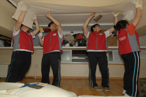 비씨카드 신입사원, 사회의 첫걸음을 나눔 문화로 시작해요! 2008년 상반기 비씨카드 신입사원 20명은 지난 8월 28일 사단법인 지구촌사랑나눔, 외국인근로자 쉼터(이하 쉼터)를 방문하여 도배, 패인트칠, 잔디발판작업, 형광등기구 교체 등 기업시민으로 첫 발을 내밈 과 동시에 '빨간사과 봉사단' 으로서 첫 신고식을 갖는 뜻 깊은 자리가 마련되었다.사) 지구촌사랑나눔은 비씨카드가 2005년부터 시작한 노인,이재민,외국인근로자 등 소외이웃을 위한 무료급식 이동차량인 빨간밥차 기증기관으로 이곳 쉼터에서는 외국인근로자 및 중국동포들의 환자들과 산업재해 요양 및 치료자, 사망자 유가족들을 위한 쉼터를 운영하며, 현재 100여명의 외국인 노동자들에게 무료 숙식제공과 의료/생활/인권상담 등의 서비스를 제공하여 새로이 한국생활을 계획할 수 있도록 돕고 있다. 신입사원 연수과정으로 사회공헌활동의 필요성에 대한 공감대 형성 차원에서 참가한 새내기들은 쉼터 내 습기와 곰팡이를 걷어 내고 도배와 페인트칠을 하며, 또 낙후된 집기를 교체하고 빗물이 유입되는 곳을 찾아 방수처리 작업도 함께 진행하는 등 외국인근로자들이 쾌적한 환경에서 생활하고, 휴식을 취할 수 있도록 땀방울을 아끼지 않았다. 쉼터에서 도배 및 청소를 담당한 송영진 사우는 "봉사활동은 다른 사람을 도움으로써 자신의 행복함을 느낄 수 있다는 말이 있는데 오늘 그 말을 몸소 체험한 것 같습니다. 우리들의 작은 노력이 다른 사람에게는 큰 도움이 될 수 있다는 사링이 너무나 즐겁고 유쾌했습니다." 라고 소감을 말하며 앞으로 빨간사과 봉사단으로써 더욱더 적극적인 봉사활동에 참여할 것 이라며 선한 마음을 내보였다. 새로이 바뀐 쉼터가 중국동포 및 외국인근로자들이 꿈과 희망을 다시 품는 터전이 되길 바라며,100만이주민, 농촌국제결혼율13%인 시대 “이미 우리이웃, 우리가 된” 외국인근로자들에 대한 열린문화가 되는데 빨간사과봉사단은 앞으로도 많은 관심과 지원활동을 계속 이어 나갈 것이다. |