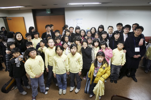 비씨카드, 제2회 사랑의 바이올린 음악회 후원 희망을 연주로 시작하는 2009년! 지난 1월 10일, 비영리민간단체인'사랑의 바이올린'이 주최하고 비씨카드가 후원하는'제2회 사랑의 바이올린 음악회'가 여의도 KBS홀에서 열렸다. 어려운 환경에 있거나 병마와 싸우고 있는 아이들에게 꿈과 희망을 심어주고자 해마다 개최되는 이번 음악회에 20여 명의 빨간사과봉사단이 자원봉사자로 참여했다. 말하지 않아도 마음이 통하는 친구 아빠 손을 잡고 온 여덟 살 예림이와 영훈이 남매가 들뜬 표정으로대기실 안으로 들어왔다. 토요일을 반납하고 음악회의 스태프로 봉사에 나선 BC카드 빨간사과봉사단도 아이들 사이사이 자리를 잡았다. 무대에 놓을 보면대의 위치를 확인하고, 자기가 맡은 아이들의 얼굴을 기억하려 눈을 맞춘다. 강현이와 짝이 된 윤연식 사우는 낯설어하는 아이 곁으로 다가가 이런 저런 이야기를 나눠본다." 아까 보니까 연주 잘하더라, 바이올린 배우는 거 힘들지 않았어?"칭찬에 기분이 좋으면서도 쑥스러워하는 강현이는 그저 말없이 고개만 끄덕인다. 사람들이 정신없이 왔다 갔다 하는 무대 뒤편, 윤연식 사우의 칭찬에 보답이라도 하듯 작은 바이올린을 턱에 괴고 현을 짚으며 연주를 시작하는 강현이. 그 어느 바이올리니스트보다 진지한 모습이다. 세상에 하나뿐인 연주회 " 다 같이 모여 연습하는 건 처음이라 잘 할 수 있을까 걱정했는데 막상 연주가 시작되니까 아이들이 정말 바이올린을 좋아하고, 자부심을 가지고 있다는 걸 느꼈어요."함경숙 사우는 자신의 걱정이 기우에 지나지 않았음을 느끼며 수많은 아이들과 뜻 깊은 주말을 보낼 수 있음에 오히려 감사했다. 3시 58분, 공연 시작을 알리는 예비종이 울리자 아이들보다 더 긴장한 것은 빨간사과봉사단. 연습 때보다 더욱 멋있게 오프닝 연주를 한 강현이의 모습에 윤연식 사우의 얼굴에 미소가 돈다. 초대 손님들의 연주가 끝나고'사랑의 바이올린'의 홍보대사이자 세계적인 바이올리니스트 강동석 교수와 아이들의 협연이 시작되었다. 아이들의 등장을 돕고 무대 뒤편으로 나온 봉사단원들이 커튼 사이로 고개를 내밀고 초조한 마음으로 아이들의 연주를 지켜본다. 관객들의 아낌없는 박수에 자신감을 얻은 아이들이 공연의 피날레인'아리랑'을 강동석 교수와 호흡을 맞춰 연주하기 시작했다. 작은 아이들과 큰 연주가의 공연에 빨간사과봉사단의 마음에도 감동이 전해진다. 내년을 기약하며 연주회는 성황리에 끝이 났지만 봉사단은 뒷정리에 자리를 뜰 줄 모른다." 잘했어"하며 아이들을 안고 토닥이는 것도 잊지 않는다. 아이들은 고사리 같은 손으로 바이올린을 켜며 빨간사과봉사단에게 세상에서 가장 값진 연주를 선물했다. 봉사단이 아이들에게 해준 것보다 더 많은 것을. |