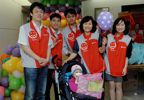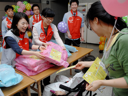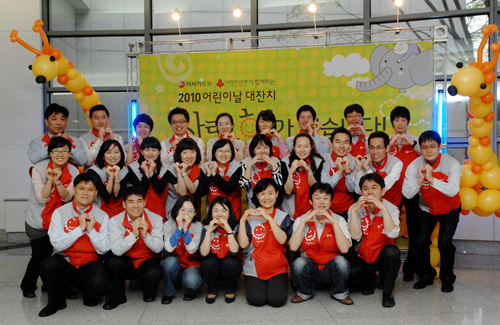 비씨카드와 사랑의열매가 함께하는 어린이날 대잔치 사랑,해가 떴습니다. 비씨카드 ‘사랑,해 봉사단’은 2010년 5월 3일 신촌 세브란스병원에서 어린이병원 환아 및 가족 그리고 인근 저소득층 아동 등 총 600명을 초청해‘비씨카드와 사랑의 열매가 함께하는 2010 어린이날 대잔치 사랑,해가 떴습니다!’행사를 진행했다. 이 날 행사는 비씨카드 이강혁 부사장과 세브란스어린이병원 병원장 및 서울사회복지공동모금회 김동수 회장이 참석한 가운데 세브란스 어린이병원 병동 및 본관 대강당에서 진행되었으며, 비씨카드의 임직원으로 구성된‘비씨카드 사랑, 해 봉사단’30명이 참여해 600명의 어린이들이 ‘어린이날 대잔치’ 행사에 참여해 공연과 이벤트를 즐길 수 있도록 진행을 돕고 함께 어울리는 시간을 가졌다. 행사는‘사랑,해 봉사단’과 방송인 박정아가 어린이 병동을 순회하며 어린이날 대잔치 행사의 시작을 알리는 것으로 시작하였으며, ‘사랑,해 봉사단’이 설치한 이벤트 부스에서 즉석 사진촬영, 농구게임, 삐에로 마술풍선, 페이스페인팅, 두더지게임, 캐리커쳐 프로그램을 진행하였다. 아이들은 자신들이 좋아하는 캐릭터를 얼굴에 그려주는 페이스 페인팅을 하고 ‘사랑,해 봉사단’이 즉석에서 촬영해주는 폴로라이드 사진을 찍으며 즐거운 시간을 보냈다. 또한 행사가 끝날 무렵 ‘사랑,해 봉사단’은 직접 포장한 선물꾸러미를 어린이 한 명 한 명에게 나누어 주고 용기를 잃지 말라는 격려를 해주며 잊지 못할 추억을 선사했다. 특히 이날 인기 가수 및 그룹 브라운아이드걸스, 샤이니, 김장훈, 엠씨몽, 제국의아이들 등이 대거 참여해 축하공연을 했고, 개그맨 겸 MC 이수근이 진행을 맡아 행사장의 열기를 더욱 뜨겁게 하였다. 어린이 날을 앞두고 이날 진행된 ‘비씨카드와 사랑의 열매가 함께하는 2010 어린이날 대잔치 사랑,해가 떴습니다!’는 어린이 환자들과 저소득층 가정의 아동들이 놀이를 하며 즐거운 시간을 갖고 이를 통해 삶의 용기와 희망을 얻어 아픈 몸과 마음이 빨리 낫길 바란다는 메시지를 담고 있다. |
