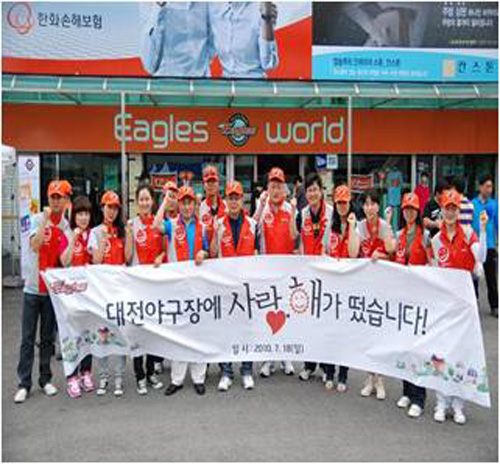 비씨카드 대전지점에서는 대전시 복지시설을 이용하는 아동들을 초청하여 야구경기 관람 및 이벤트를 진행하는 봉사활동을 가졌습니다. 한화이글스와 연계한 이번 봉사활동 이벤트에는 어린이 시구, 시타, 선수와 기념촬영 및 하이파이브 등을 하였습니다.