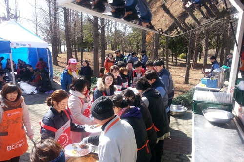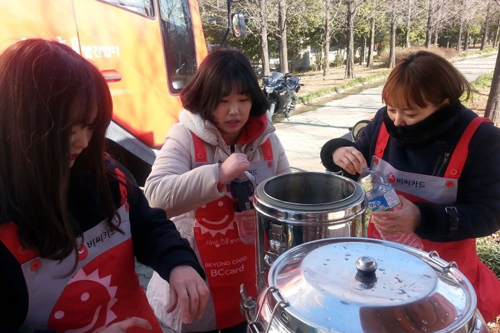 2기 울산팀 첫 지역봉사, 꽃샘추위가 저희를 가장 먼저 반겨주었는데요. 저희는 꽃샘추위가 반갑지 않았습니다. 어르신들과 첫 만남인데, 추운 날씨 때문에 식사하러 많이 안오실 것 같아 아쉽기도 했습니다. 저희는 어르신들께 조금이라도 따뜻한 식사 장소를 마련해드리기 위해 바람막이를 꼼꼼히 설치하고, 식사배식을 했습니다. 시원한 소고기 무국과 영양만점 계란찜. 저희 손으로 만들고 직접 전해드리니 감동도 두배였습니다.