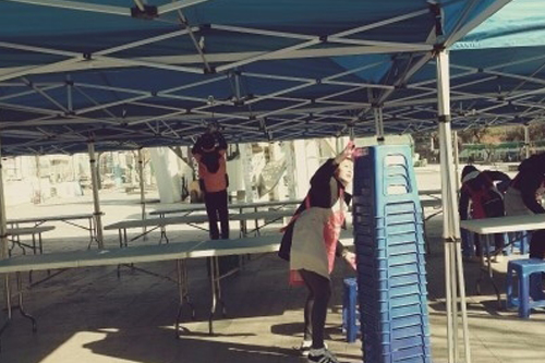 인천 지역 첫 활동 날, 하늘도 화창하고 날씨도 포근했습니다. 인천지역에서는 식사장소에 천막과 바람막이를 치고 내부 히터를 설치하는데요. 어르신들이 따뜻한 곳에서 식사를 하실 수 있도록 작은 틈도 허락하지 않습니다. 오늘은 생신을 맞이하신 어르신께 파티를 해드리는 날이었습니다. 봉사단이 노래도 부르고 같이 춤도 추며, 어르신들께 즐거움도 전해드렸습니다. 빨간밥차 봉사단 2기 인천팀 화이팅!