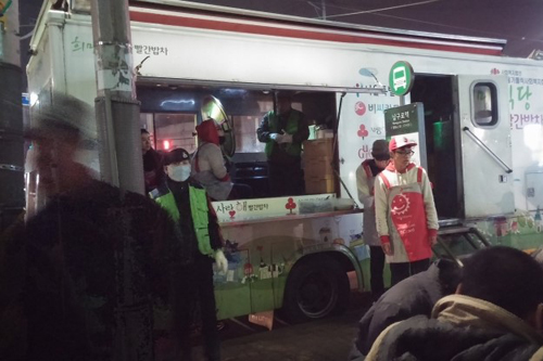 새벽에 일어나는 일이 쉽지 않습니다. 밤새 카페에서 공부하다 오는 봉사자도 있습니다. 그만큼 열정으로 똘똘 뭉친 구로팀. 밥차 기관에서도 봉사단에 대해 따뜻한 애정관 관심을 보여주십니다. 뜨끈한 국밥이 오늘 따라 더 맛있습니다.