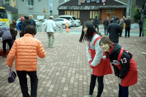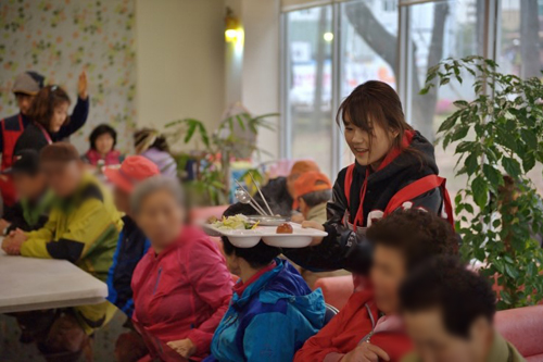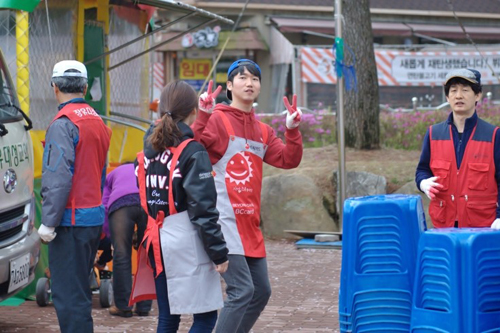 벚꽃도 우수수 떨어지고, 바람이 차가웠습니다. 야외배식으로 진행되는 김해팀은 오늘 실내배식으로 변경됐습니다. 어르신들이 건강하게 드실 수 있도록 실내에 테이블과 의자를 펴고 배식을 준비했습니다. 식사하러 오시는 어르신 한 분, 한 분께 인사를 드리며 봉사단의 마음을 전했습니다.