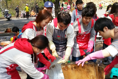 전날까지 비가 오더니, 오늘은 화창했습니다. 벌써 네 번째 활동을 하다 보니 말 안 해도 척척! 재료손질도 일류 셰프 수준입니다. 봉사단은 작은 일 하나에도 여러 사람이 힘을 모아서 협동합니다. 으쌰 으쌰! 대구팀 파이팅!