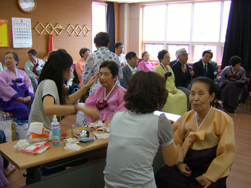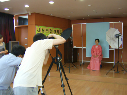 지난 6월 16일(토) 오전 9시부터 저희 센터는 분주한 모습이 진행되었습니다. 바로 BC카드 사진동호회에서 지역 저소득 어르신들을 위한 <사랑의 영정사진 찍기>가 있던 날이었기 때문입니다... 곱게 화장하시고 한복과 양복을 차려 입으신 어르신들이 삼삼오오 골목을 누비시면 들어오셔서 센터 강당에 차례를 기다리셨습니다... 그리고 드디어 BC카드 회사 사진동회 직원분들이 오셔서 메이크업으로 어르신들 모습을 또렷이 나오게 단장해주시고, 포토존을 만들며 영정사진을 촬영해 주셨습니다... 백발이 성성하고 주름진 얼굴모습에서 조금이라도 웃으면서 평안한 모습을 찾을려고 열심을 다해 촬영을 해주시는 모습은 사회복지사인 저도 숙연해집니다... 이 시간은 직장인들이 주말을 가족과 함께 단란히 보내는 시간일텐데...긴 시간(장장 6시간) 서서 어르신들의 밝은 모습을 찾아내면서 촬영하는 모습...화장을 해주시는 모습...그리고 찍은 다음 사진을 정리(포샵처리)하여 영정사진 액자를 만드는 모습은 베테랑 봉사자의 모습 그 자체였답니다. 정성을 다한 영정사진 앞에서 어르신들의 가시는 길이 위안이 된다면...그리고 어르신들의 평안한 모습을 보면서 그 가족이 위로가 된다면...주말의 단란한 시간이 아쉬움이 없으시답니다....봉사해주신 BC카드 사진동호회 회원인 이말봉,신동명,이태훈,권진영,박지연,고현정,정회경,김영경,백경옥 봉사자님께 다시금 감사를 드리며... 앞으로도 저희 센터 기억하시고... 그 아름다운 봉사가 계속 이어지길 기원합니다... 2007년 6월 19일