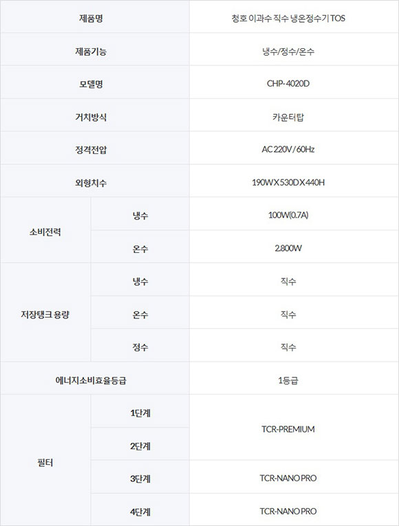 [이과수 직수 냉온정수기 TOS (CHP-4020D)]